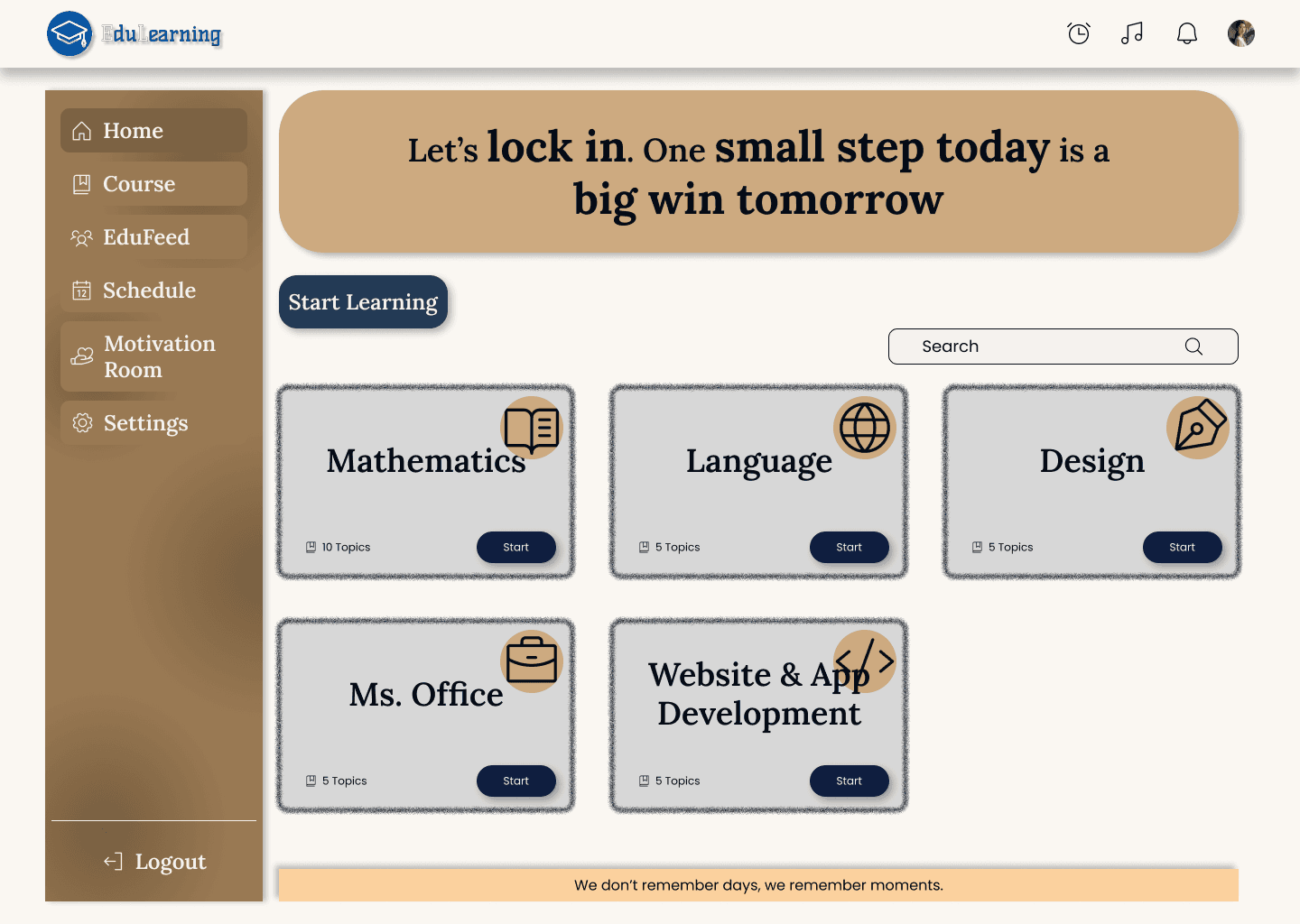 I designed an e-learning website to help users access online courses with a clear and user-friendly interface.
