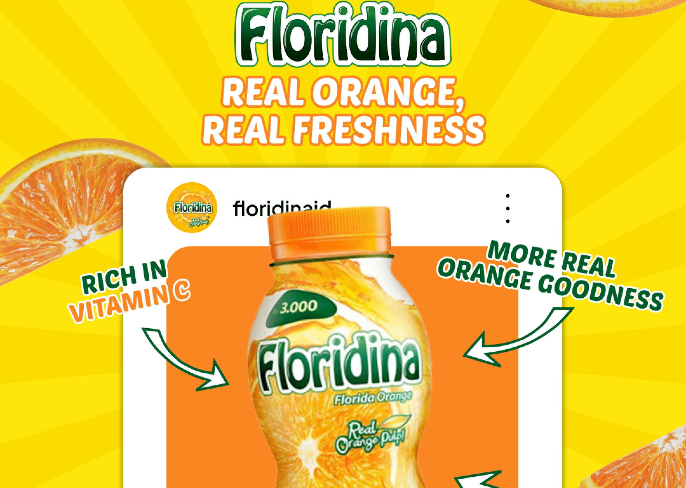 I designed a colorful advertisement for Floridina, highlighting freshness and product appeal.