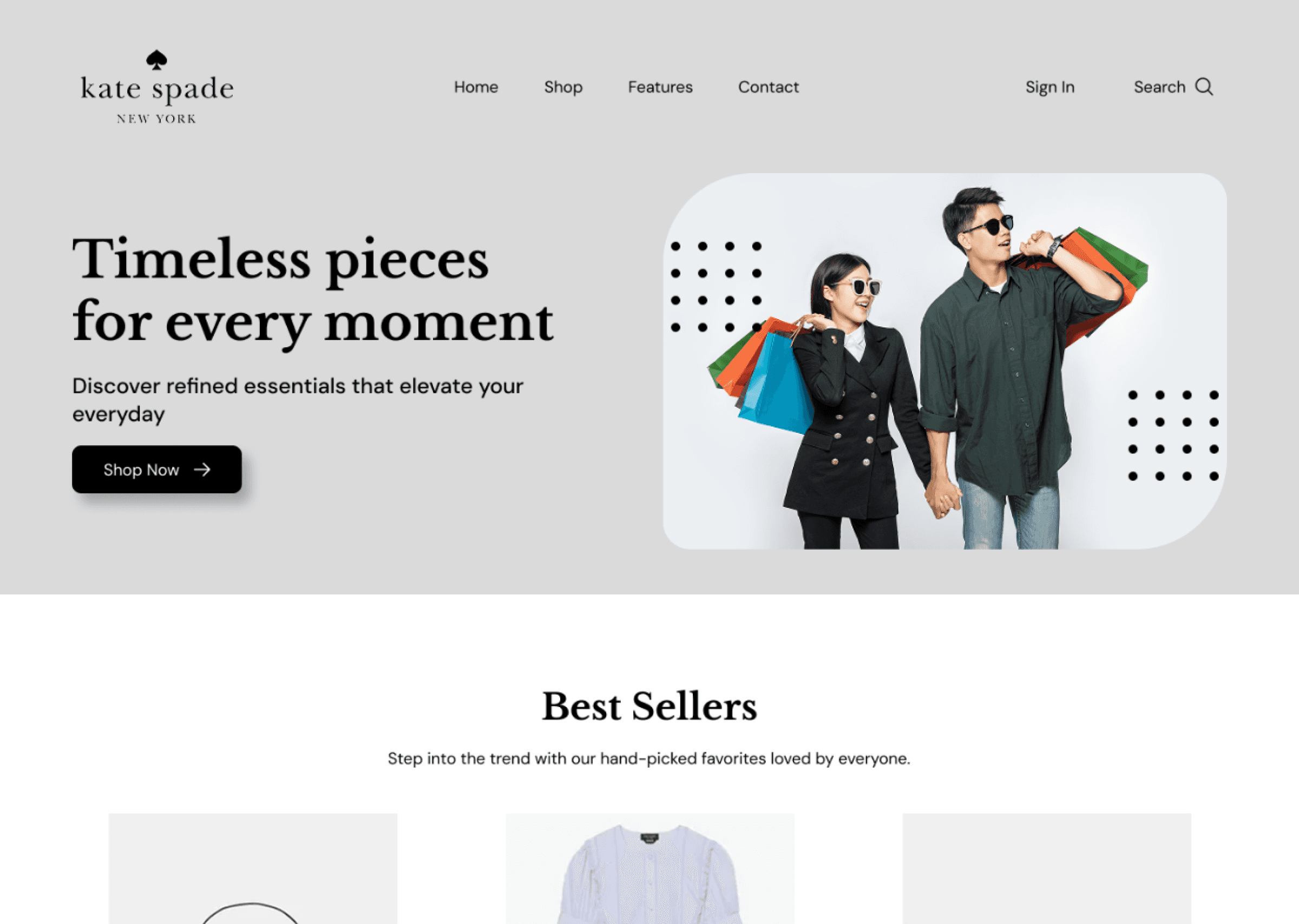 I redesigned the Kate Spade homepage to create a cleaner layout and improve visual hierarchy for a better shopping experience.